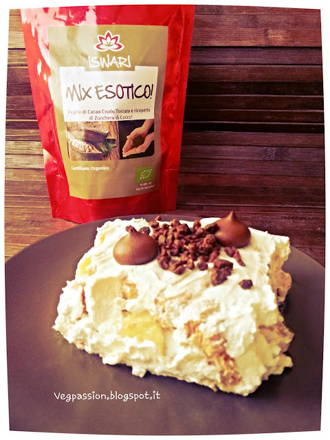 Montare la panna e mettere da parte, nel frattempo aprire l’ananas in scatola e usare il succo per bagnare lo strato della millefoglie che prima abbiamo creato uno strato in teglia da frigo. aggiungere la panna, le mandorle e l’ananas tagliati a pezzettini. Aggiungere un altro strato di della millefoglie, altra panna e ananas, andare avanti così fino ad arrivare all’ultimo strato che ricoprirai con la panna. Prima di servire decorate con una granella Mix Esotico